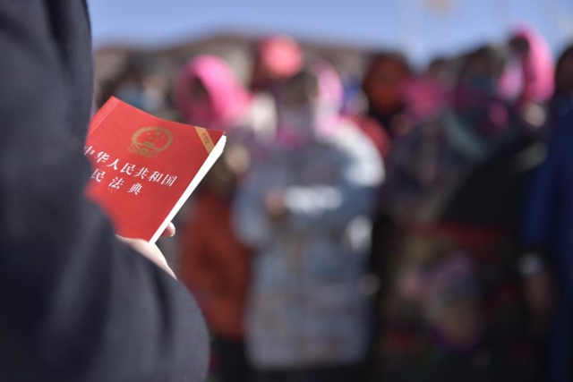 拉姆曲珍宣講完,輪到洛桑曲珍登場(chǎng)。她揚(yáng)了揚(yáng)手里的紅色民法典:“民法典已經(jīng)開始實(shí)行了,將會(huì)全面影響我們的生活。比如說,孩子給游戲大額充值可以退款。再比如,網(wǎng)貸被‘套路’也不用怕了,民法典明令禁止高利放貸。”