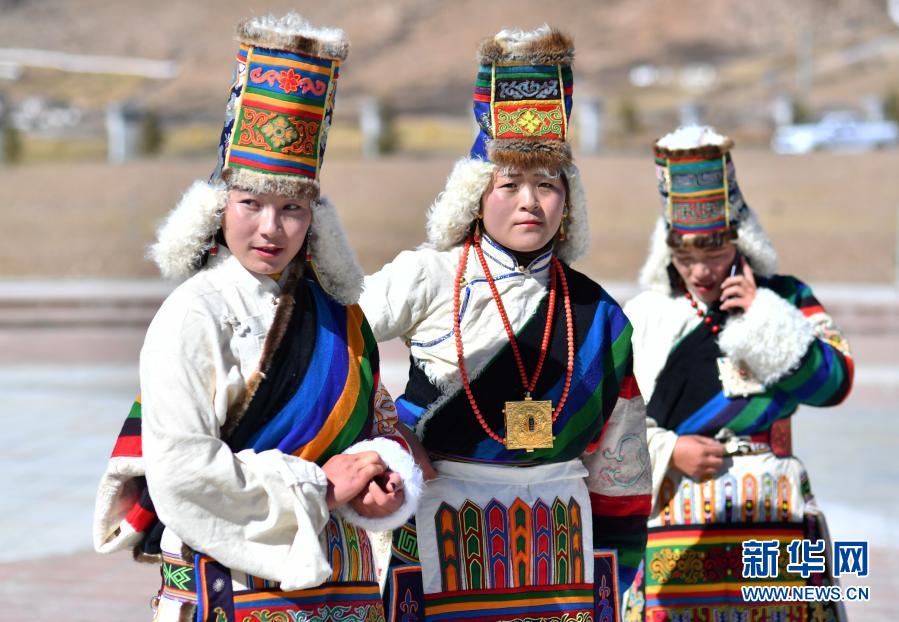 2月12日在藏北當(dāng)雄縣拍攝的三名盛裝牧女。新華社記者 覺果 攝
