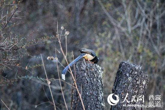 珠峰保護區(qū)內的黃嘴藍鵲 北京林業(yè)大學學生鐘華 攝