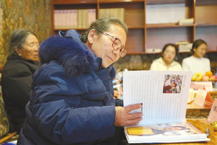 圖為昌都市婦聯(lián)組織老黨員干部查看“70人70事獻禮畫冊”?! ?/p>