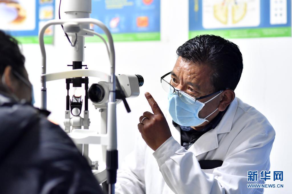 3月24日,西藏拉薩光明眼科康復診療院醫(yī)生對白內(nèi)障患者進行檢查。新華社記者 覺果 攝