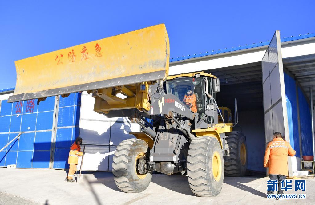 安多公路養(yǎng)護段工作人員在試用鏟雪機(1月13日攝)。新華社記者 張汝鋒 攝