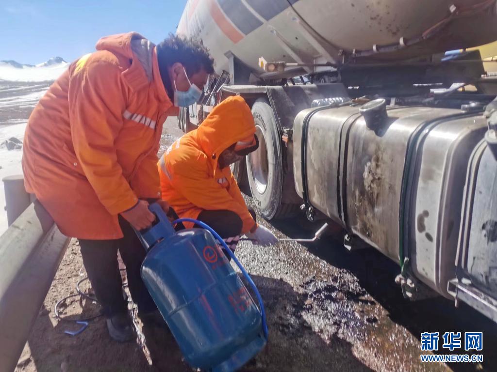 安多公路養(yǎng)護段工作人員幫助搶修故障車(2019年2月8日攝)。新華社發(fā)(后耀軍 攝)