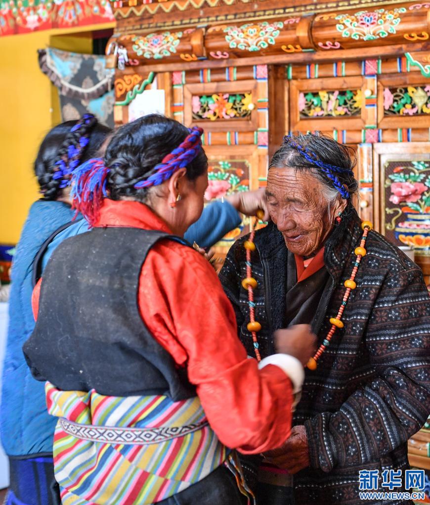 達(dá)確女兒給她戴上首飾(1月14日攝)。新華社記者 晉美多吉 攝