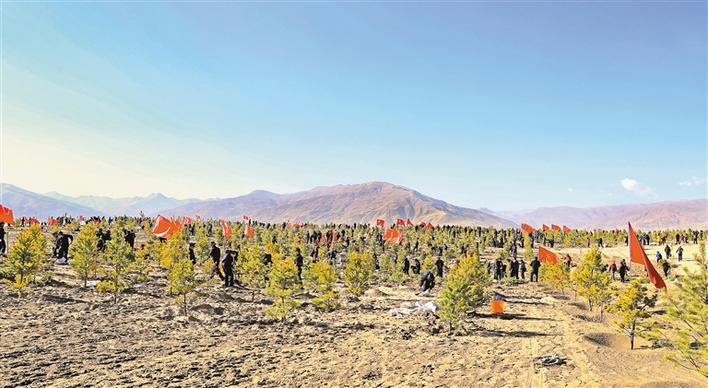 圖為山南市瓊結(jié)縣干部群眾開展植樹造林活動(dòng)。