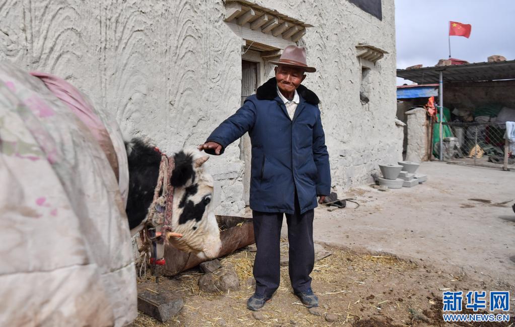 次培老人在家里喂牛(3月22日攝)。新華社記者 晉美多吉 攝