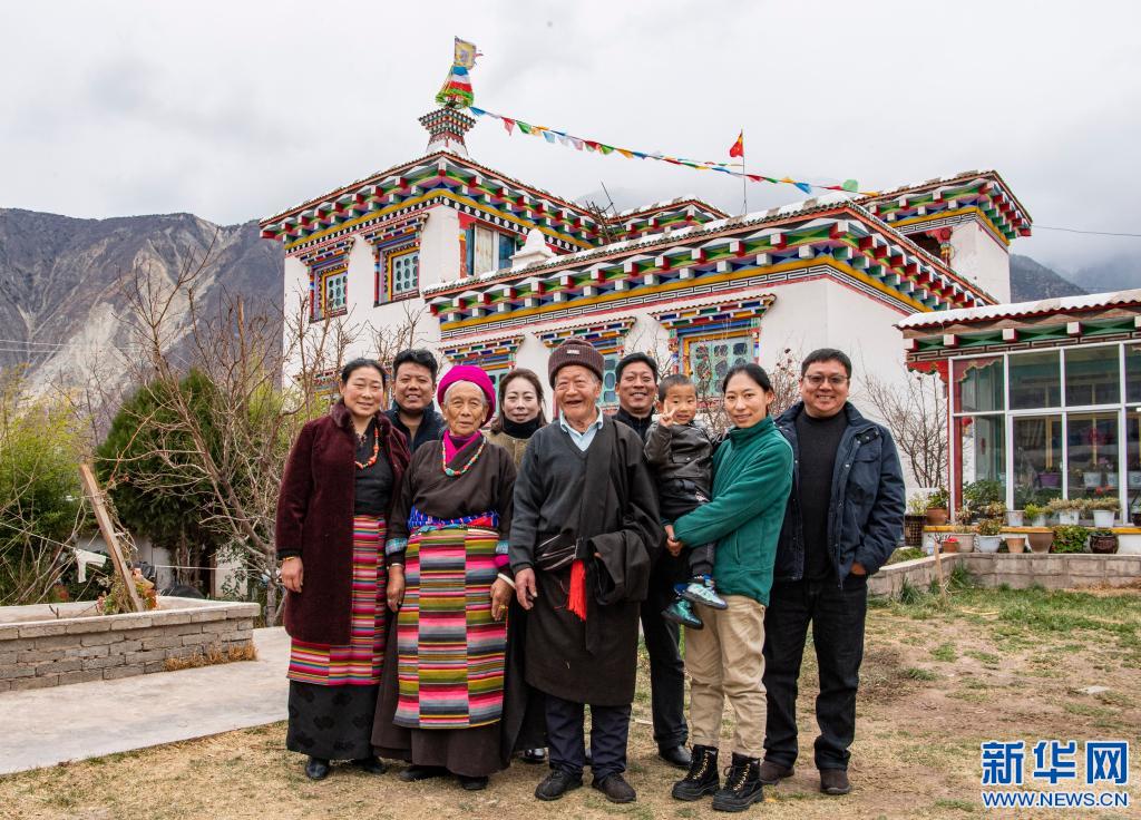 舊社會(huì),昂旺尼瑪住的是木頭搭建的簡(jiǎn)易棚子,夏天漏雨,冬天漏風(fēng)。如今,昂旺尼瑪住在藏式小別墅,享受著四世同堂的天倫之樂(lè)。