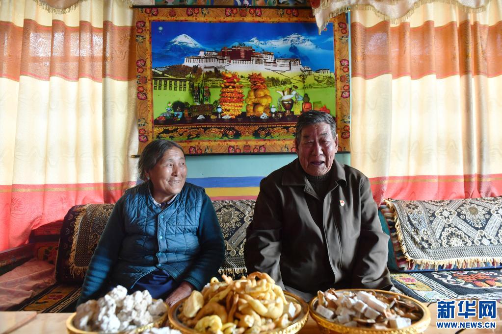 索朗楊佩(右)和老伴兒卓嘎在位于米林縣單嘎努覺(jué)村的家中留影(3月30日攝)。新華社記者 孫瑞博 攝