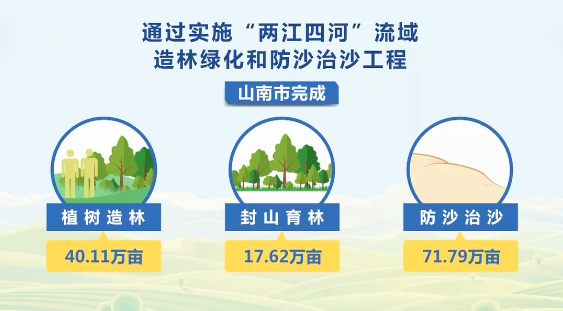 通過實施“兩江四河”流域造林綠化和防沙治沙工程,近年來山南市完成植樹造林40.11萬畝、封山育林17.62萬畝、防沙治沙71.79萬畝,創(chuàng)建了全國防沙治沙綜合示范區(qū)。在“十四五”期間,西藏將進一步推進生態(tài)文明建設。