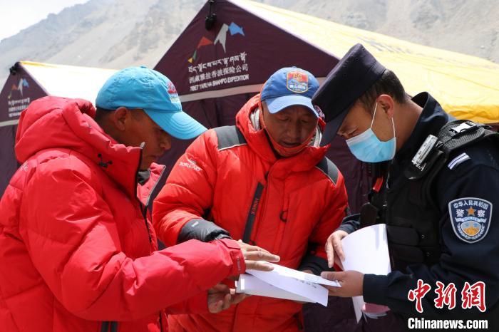 圖為民警了解登山隊人員信息情況。珠峰邊境派出所供圖