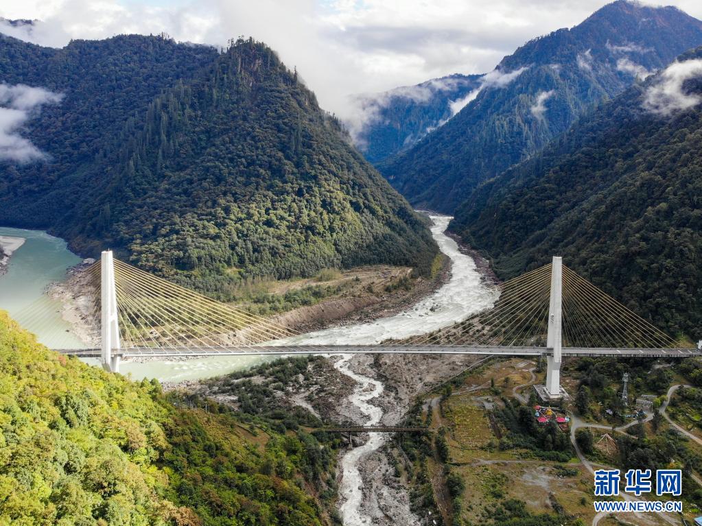 這是川藏公路通麥路段上的迫龍溝特大橋(2019年10月27日攝,無人機照片)。新華社記者 孫非 攝