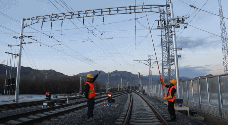 此次接觸網(wǎng)受電,由協(xié)榮站、扎囊站、山南站依次往林芝車(chē)站進(jìn)行,全線共有11座變電所、23個(gè)供電臂,整個(gè)受電過(guò)程歷經(jīng)1小時(shí)29分。