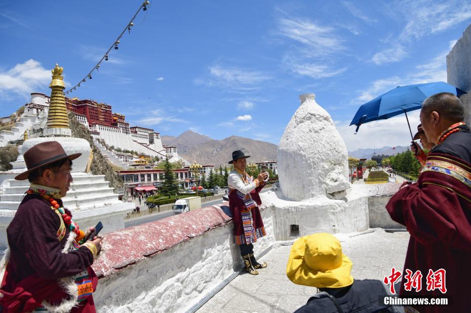西藏官方發(fā)布數(shù)據(jù)顯示,2021年一季度,西藏接待國內(nèi)外游客171萬人次,同比增長2.4倍,實現(xiàn)旅游收入13.78億元人民幣,增長3.1倍?!拔逡弧奔倨趯⒅粒诶_布達(dá)拉宮、八廓街等地可以看到,身著藏族傳統(tǒng)服飾拍照留念的游客絡(luò)繹不絕,西藏旅游預(yù)計將迎來小高潮。圖為4月29日,藍(lán)天白云映襯下的布達(dá)拉宮。中新社發(fā) 貢嘎來松 攝