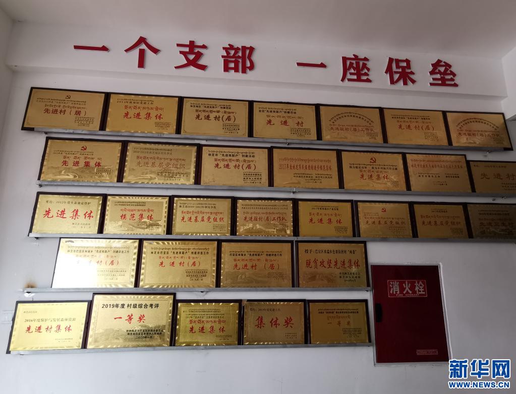 色果拉村村黨支部的榮譽墻(2020年5月12日攝)。新華社記者 薛文獻 攝