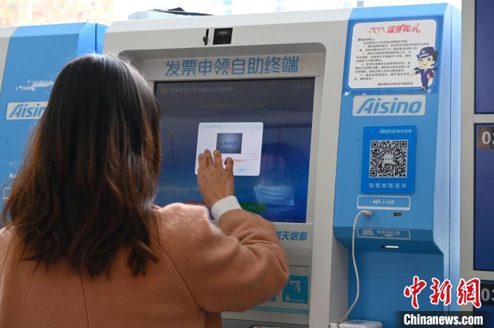 圖為一名企業(yè)財務人員通過發(fā)票申領自助終端申領發(fā)票。