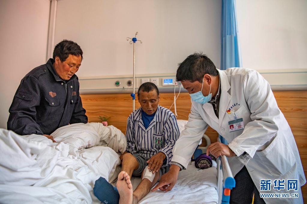 在西藏昌都市八宿縣人民醫(yī)院,醫(yī)生給剛接受了膝關(guān)節(jié)置換手術(shù)的患者做檢查(3月29日攝)。新華社記者 孫非 攝