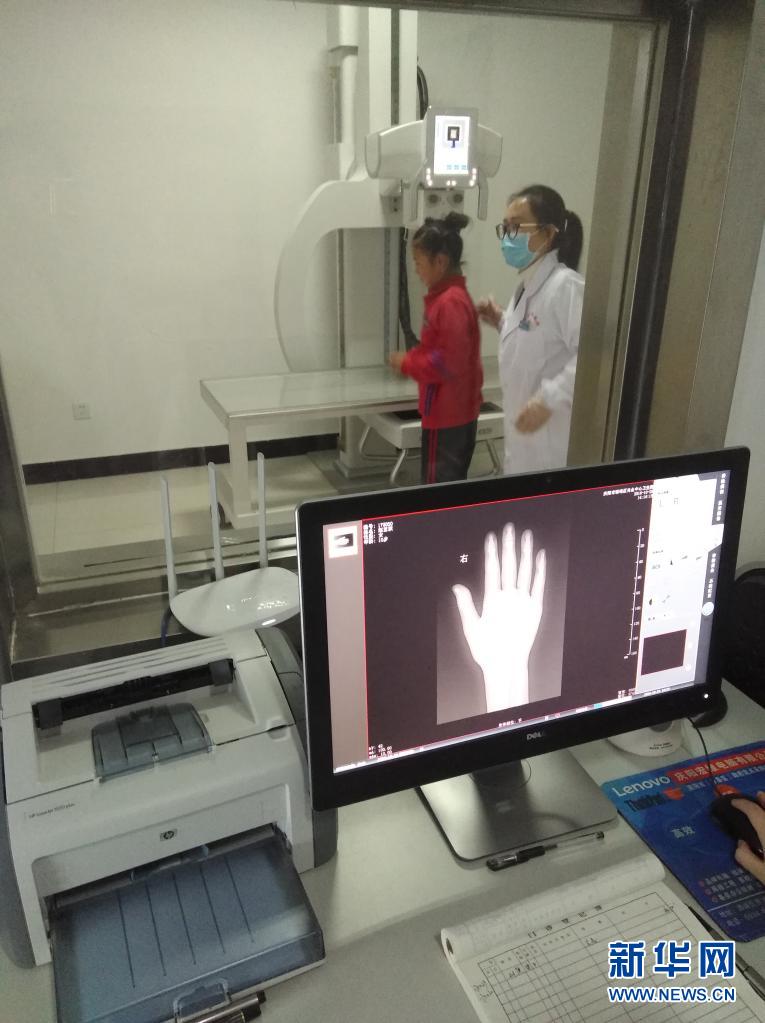 在甘肅省慶陽市,醫(yī)生在對疑似大骨節(jié)病的兒童開展X線檢查(2018年10月29日攝)。新華社發(fā)