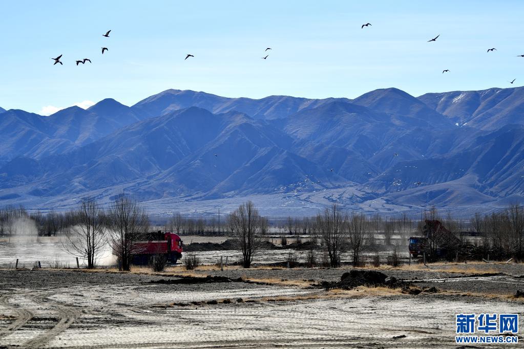 日喀則市桑珠孜區(qū)那塘村,高標(biāo)準(zhǔn)農(nóng)田項(xiàng)目施工現(xiàn)場(2020年3月1日) 新華社記者張汝鋒 攝