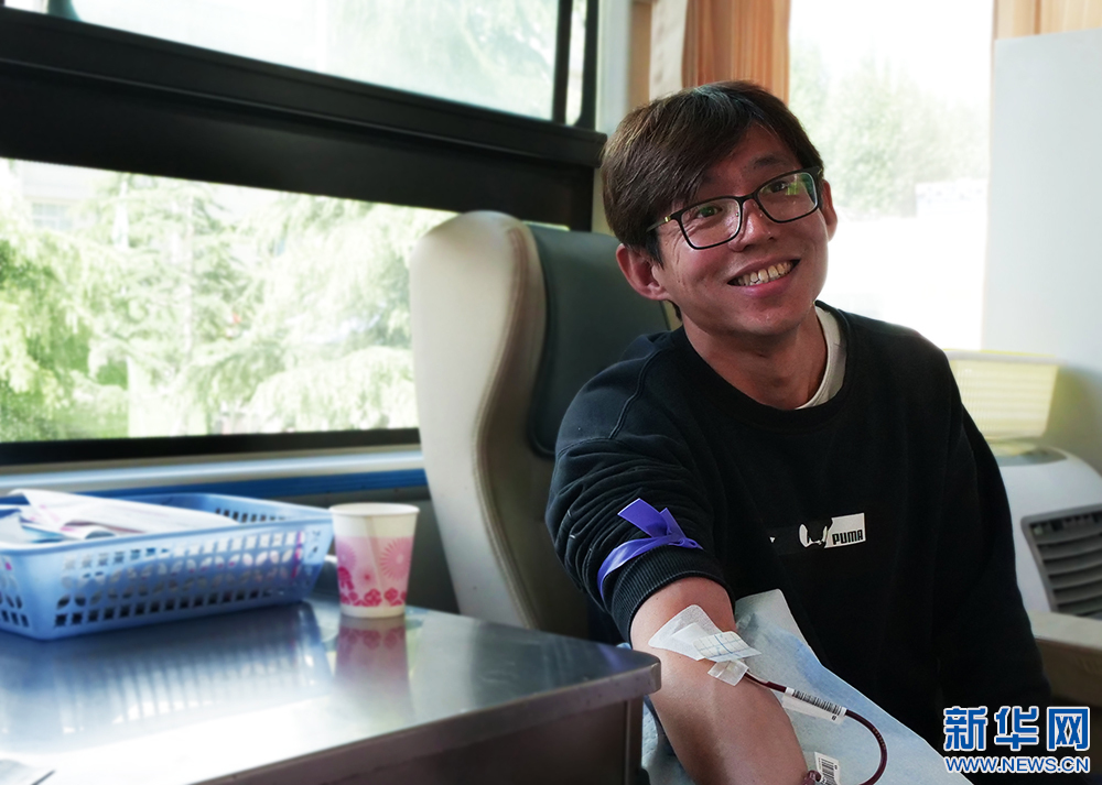 5月27日,來自北京大學(xué)人民醫(yī)院的援藏干部朱志峰在獻(xiàn)血。(新華網(wǎng) 旦增努布攝)