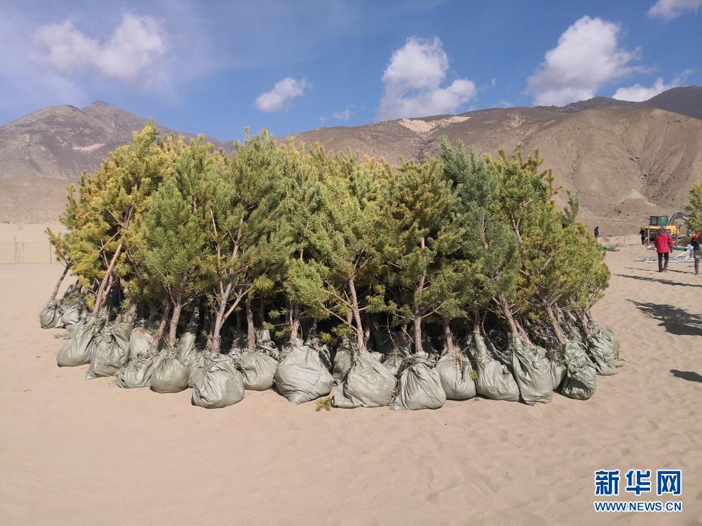 山南市江北“萬(wàn)人萬(wàn)畝”義務(wù)植樹(shù)造林所用的樹(shù)苗(2021年3月7日攝)。新華社發(fā)(資料照片)