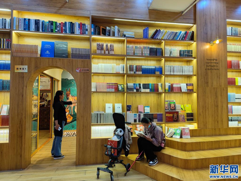 “閱讀與人生相伴,書香與夢想齊飛”。走在拉薩市宗角祿康公園北側(cè),這副對聯(lián)映入眼簾。走進(jìn)書屋,只見各式書籍整齊排列,桌子上擺放著報紙和雜志。61歲的貢嘎挑選了一本藏語讀物,坐在靠門的位置,享受自己的閑暇時光。