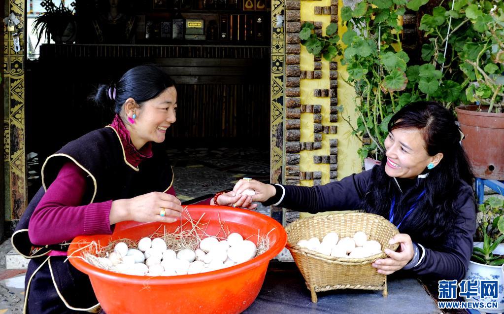西藏林芝市魯朗鎮(zhèn)村民整理收集來的藏雞蛋(2016年4月6日攝)。新華社記者 張汝鋒 攝