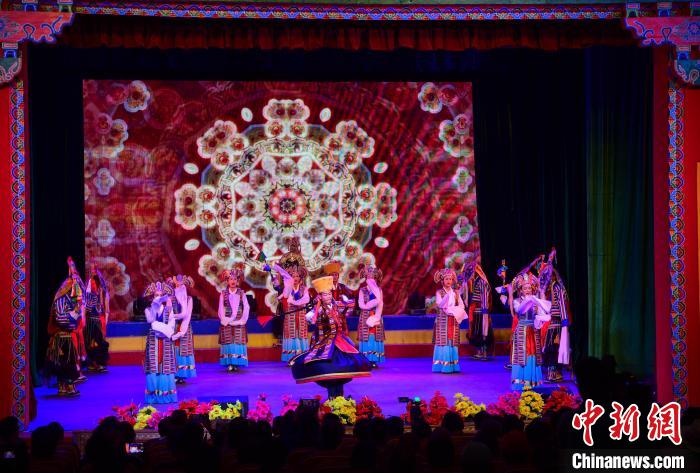 圖為拉薩市城關(guān)區(qū)娘熱民間藝術(shù)團(tuán)帶來的歌舞《拉薩囊瑪》 貢嘎來松 攝