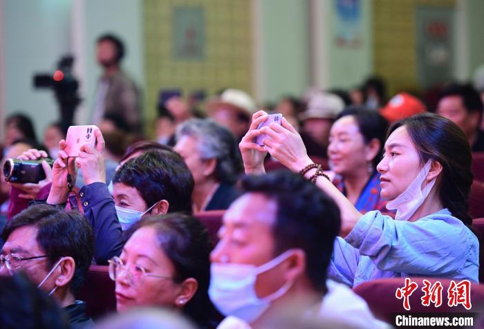 圖為場(chǎng)觀眾正在用手機(jī)拍攝西藏非遺演出?!∝暩聛硭?攝