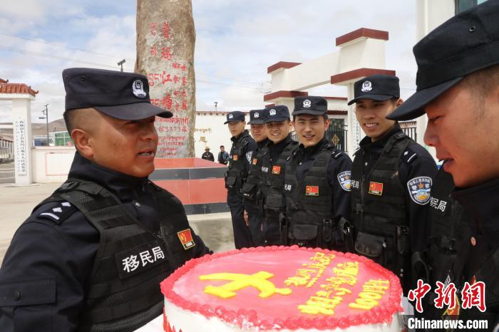 在全國海拔最高的行政鄉(xiāng)普瑪江塘,邊境派出所組織民警在轄區(qū)海拔5600米的崗布冰川開展邊境巡邏工作,并巧手制作了慶祝黨的100年主題生日蛋糕,用實(shí)際行動(dòng)向建黨100周年獻(xiàn)禮。