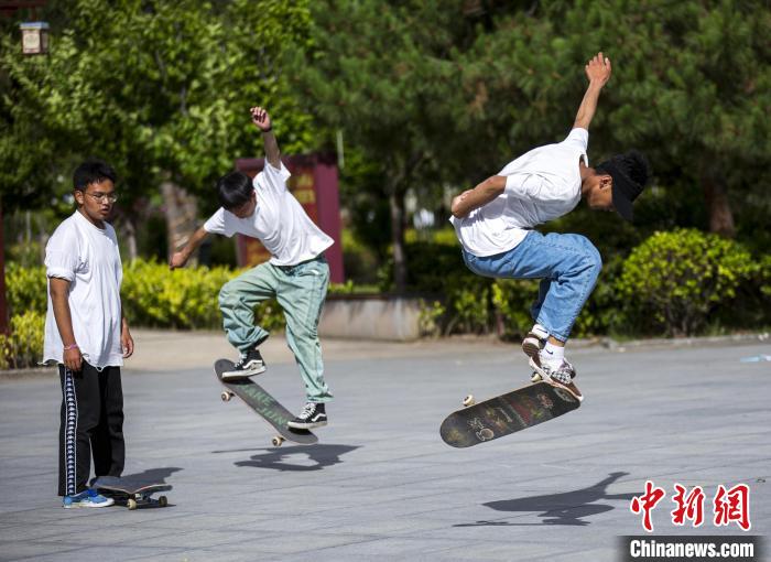 圖為幾位少年在林芝市福建公園內(nèi)玩滑板。(資料圖) 欒遠(yuǎn)春 攝