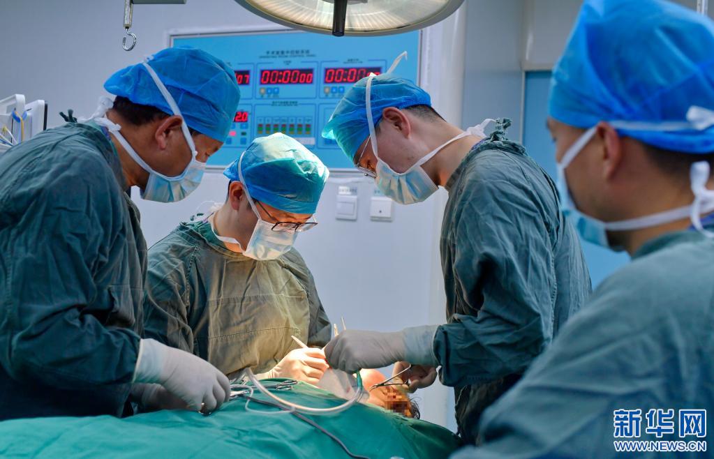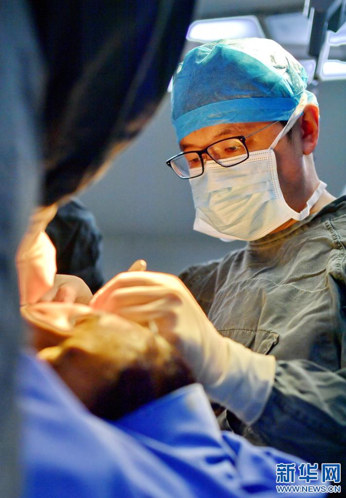在西藏自治區(qū)人民醫(yī)院手術室,王克明為面部畸形患者做手術(5月11日攝)。新華社記者 張汝鋒 攝