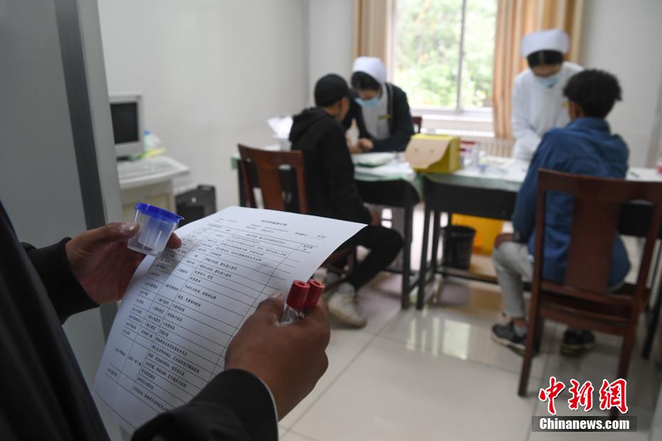 圖為參加定向培養(yǎng)士官體格檢查的學(xué)生正在進(jìn)行血常規(guī)檢查。 貢嘎來松 攝