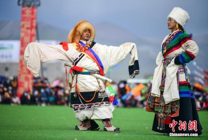 資料圖為西藏自治區(qū)拉薩市當(dāng)雄縣賽馬節(jié)上的藏族傳統(tǒng)服飾表演。中新社記者 貢嘎來(lái)松 攝