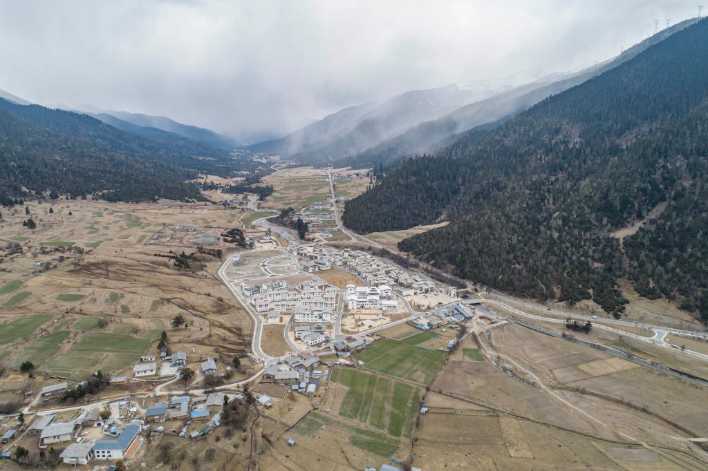 這是川藏公路旁的魯朗國際旅游小鎮(zhèn)(4月2日攝,無人機(jī)照片)。新華社記者 孫非 攝