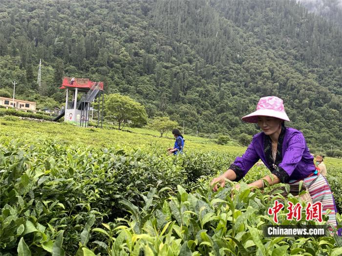 茶產(chǎn)業(yè)還給當(dāng)?shù)厝罕娫黾恿耸杖?。一個正在采茶的藏族姑娘告訴媒體團,采來的茶葉論斤計價,如果采到最尖端的小嫩葉,每斤可換回150元。