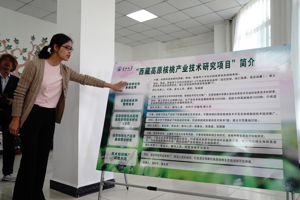 7月8日,長江大學(xué)西藏高原核桃產(chǎn)業(yè)研究所在山南市加查縣加查鎮(zhèn)龍巴村揭牌,近20人研究團(tuán)隊將為當(dāng)?shù)睾颂耶a(chǎn)業(yè)提供優(yōu)良品種選育、嫁接等科技服務(wù)。長江大學(xué)教師劉利平博士團(tuán)隊在加查工作4個多月,研究核桃資源分布、病蟲害等。