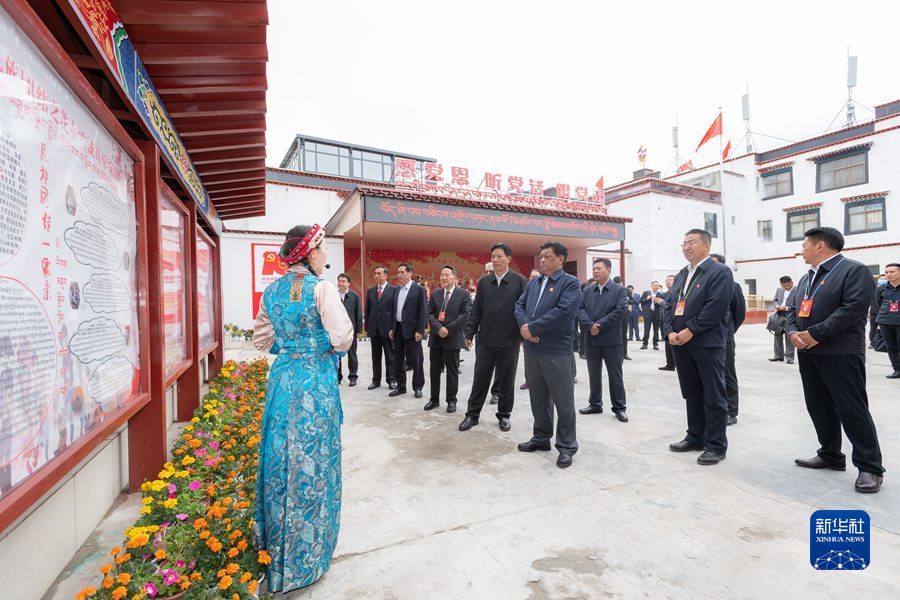 8月20日,中央代表團(tuán)山南、日喀則分團(tuán)帶著以習(xí)近平同志為核心的黨中央的深切關(guān)懷和全國人民的深情祝福,分別看望慰問當(dāng)?shù)馗髯甯鹘绺刹咳罕?。這是全國人大常委會(huì)副委員長、中央代表團(tuán)副團(tuán)長白瑪赤林率日喀則分團(tuán)來到日喀則桑珠孜區(qū)城北街道辦事處江洛康薩社區(qū),視察民族團(tuán)結(jié)創(chuàng)建和新時(shí)代文明實(shí)踐中心建設(shè)工作情況。新華社記者 翟健嵐 攝