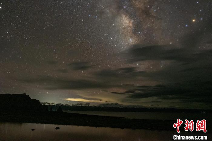 圖為8月26日晚,納木錯北岸湖邊的星空。 江飛波 攝