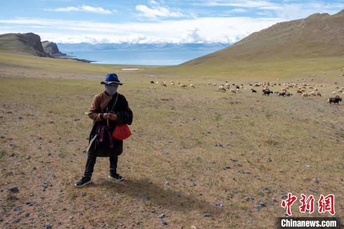 37歲的土桑是西藏那曲班戈縣青龍鄉(xiāng)嘎雄村的牧民,8月,他和同村另兩位牧民負責照看村里的羊群,在美麗的納木錯北岸湖邊放牧。