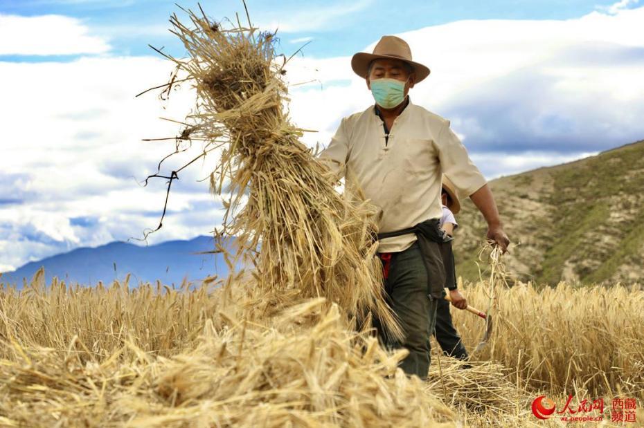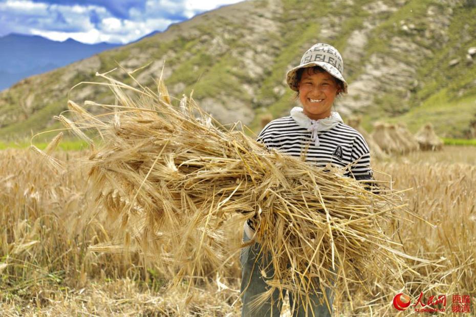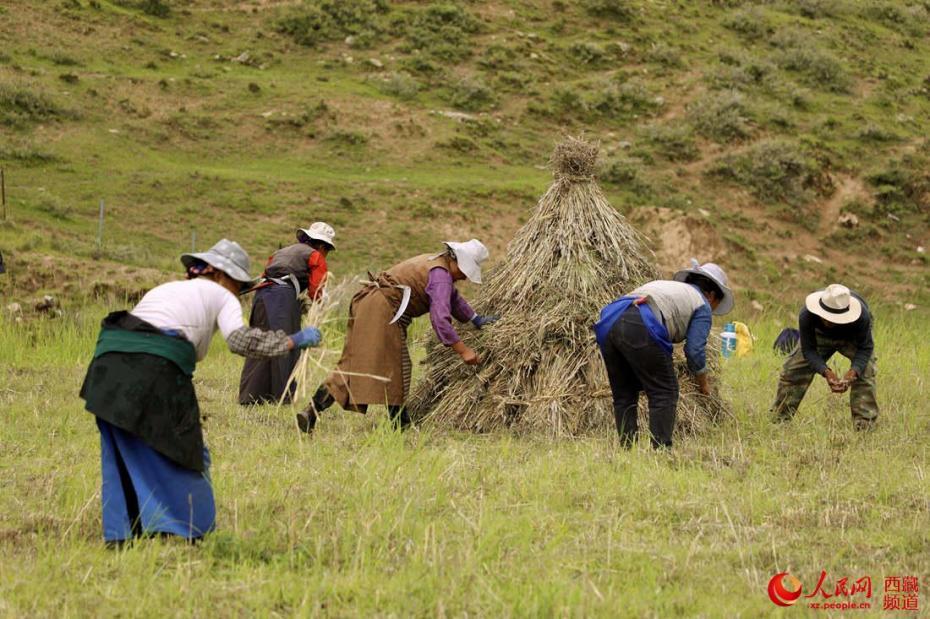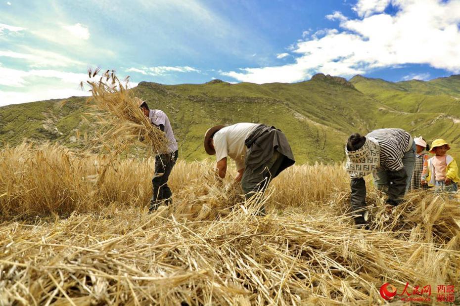 村民在田間收獲青稞。人民網(wǎng) 次仁羅布攝