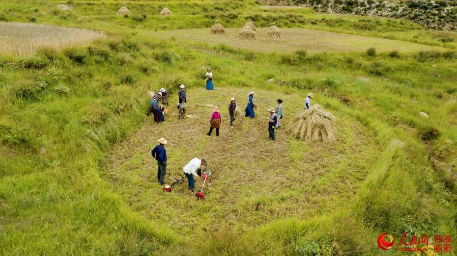 互幫互助忙收割。人民網(wǎng) 次仁羅布攝