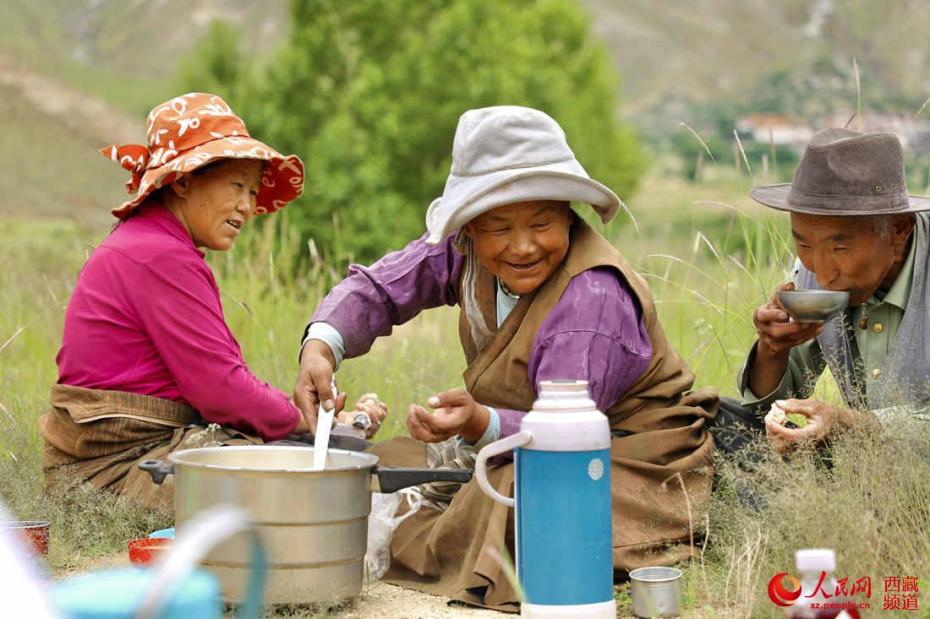忙完農(nóng)活一起開飯。人民網(wǎng) 次仁羅布攝
