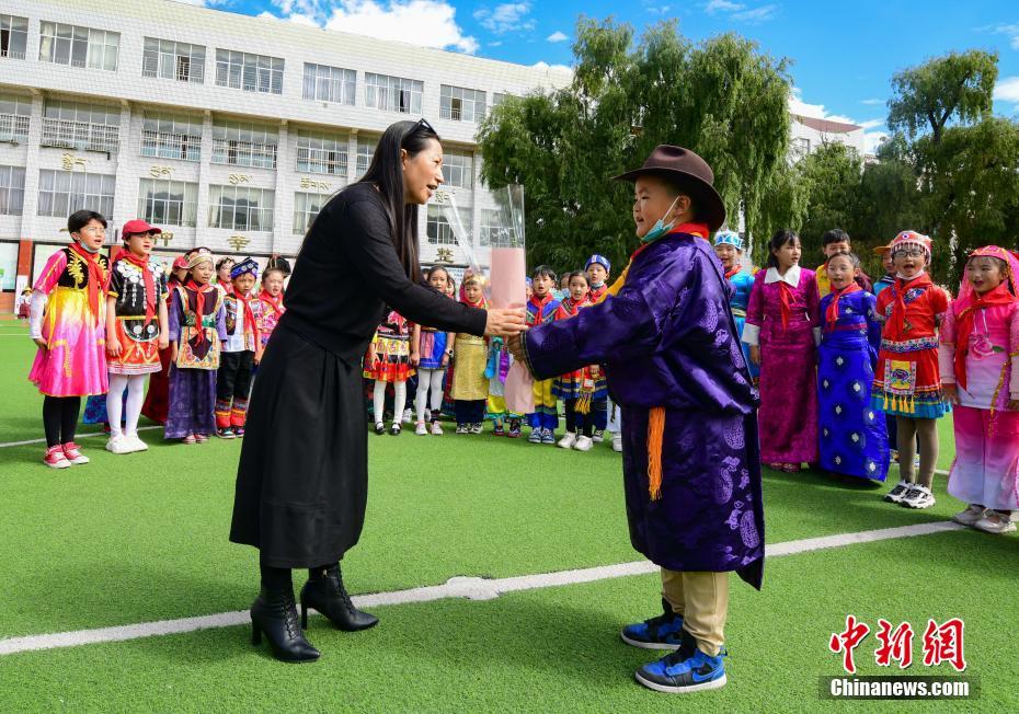 9月10日是第37個教師節(jié),西藏拉薩市第一小學(xué)舉行了以“譜團(tuán)結(jié)新篇 育桃李芬芳 感教師恩情”為主題的慶?;顒?。學(xué)生以敬禮、獻(xiàn)花、擁抱等方式,表達(dá)對老師的感恩之情。中新社記者 貢嘎來松 攝