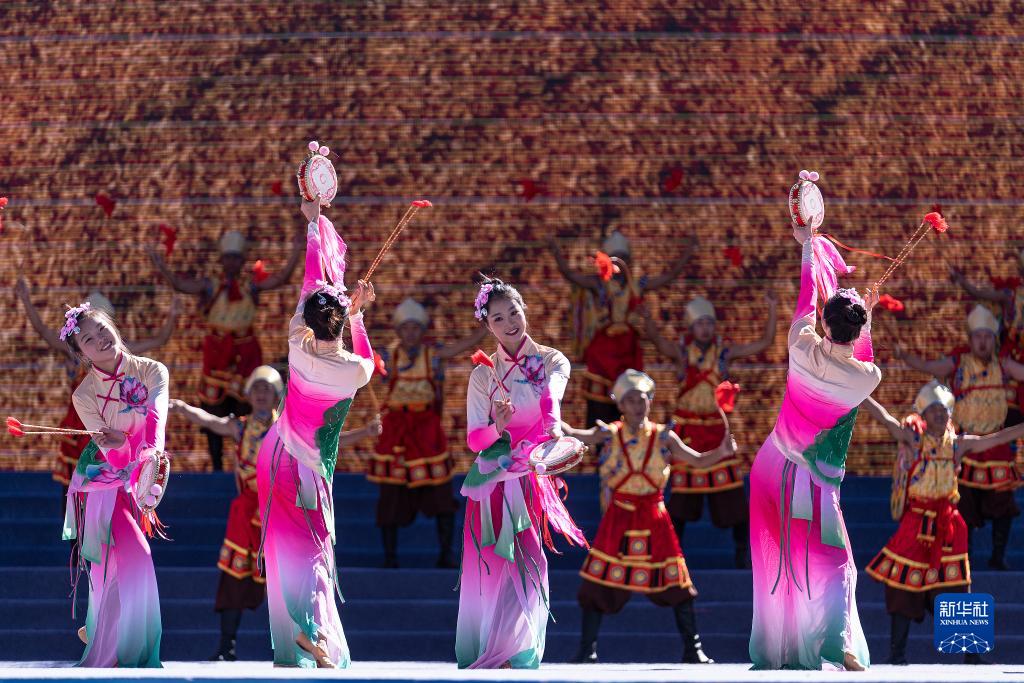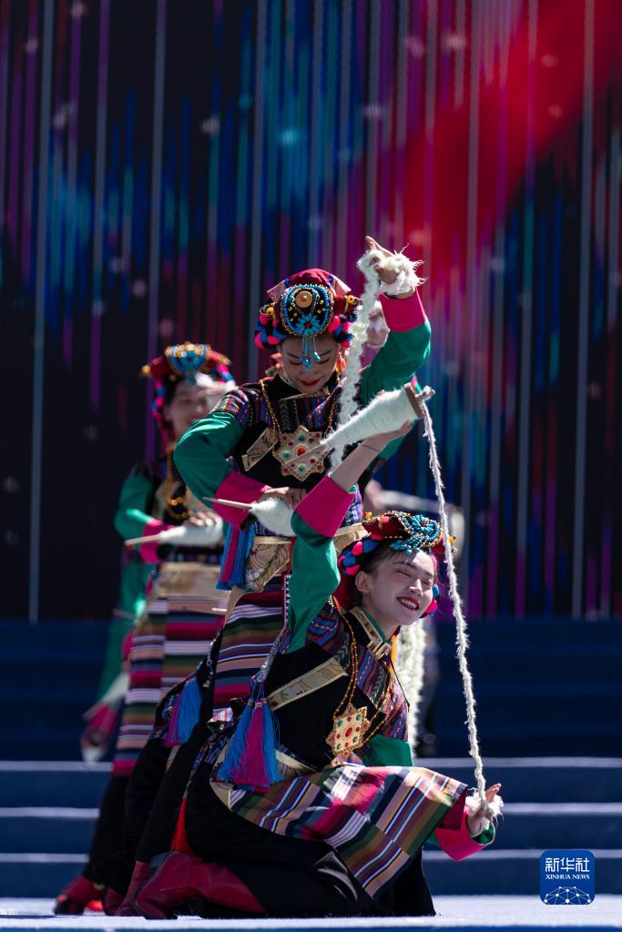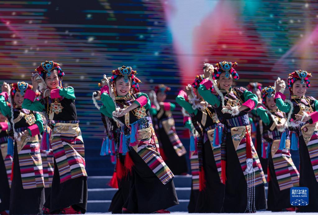 9月13日,來自安徽和西藏的演員在2021雅礱文化旅游節(jié)開幕式上表演。新華社記者 孫瑞博 攝