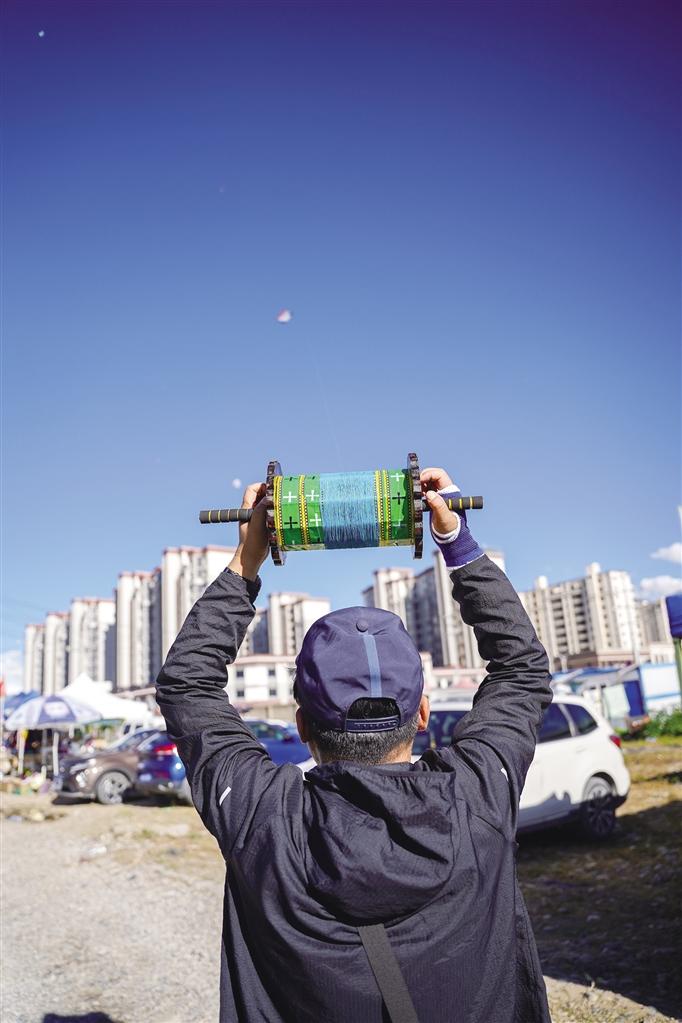 近日,記者來到位于江蘇實(shí)驗(yàn)中學(xué)附近的拉薩河畔,這里聚集著不少賣風(fēng)箏的小攤,旁邊也有很多放風(fēng)箏的人。風(fēng)箏在拉薩稱為“洽皮”,而在日喀則被稱為“秀洽”。西藏風(fēng)箏最大的特色在于“斗風(fēng)箏”,勝負(fù)取決于風(fēng)箏絞線的質(zhì)量和風(fēng)箏愛好者的放飛技巧。