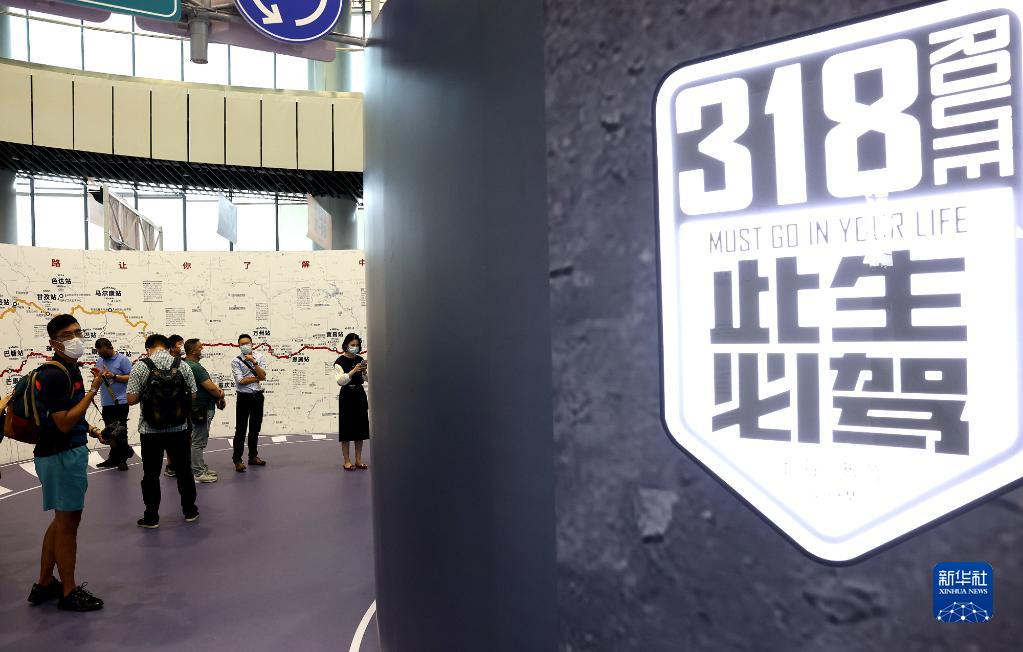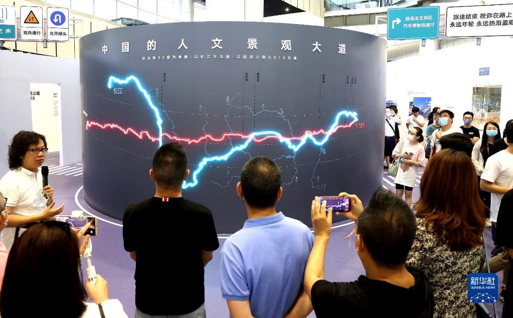 9月28日,觀眾在“公路文化在中國(guó)”主題展上觀看318國(guó)道示意圖。新華社記者 陳飛 攝