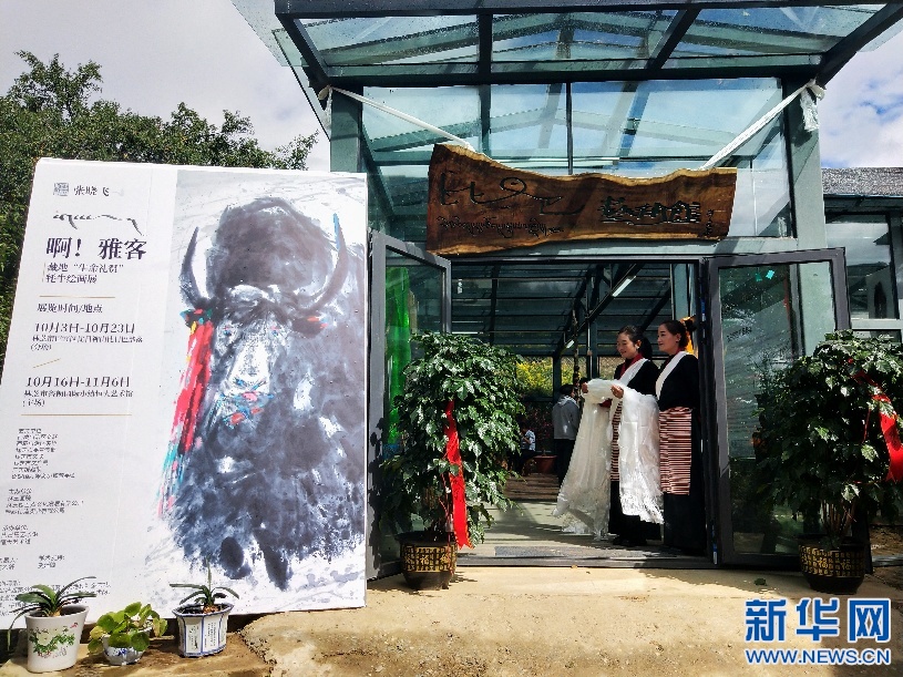 10月3日,在拉丁嘎村鄉(xiāng)村藝術(shù)館開幕的牦牛繪畫展。(受訪者供圖)