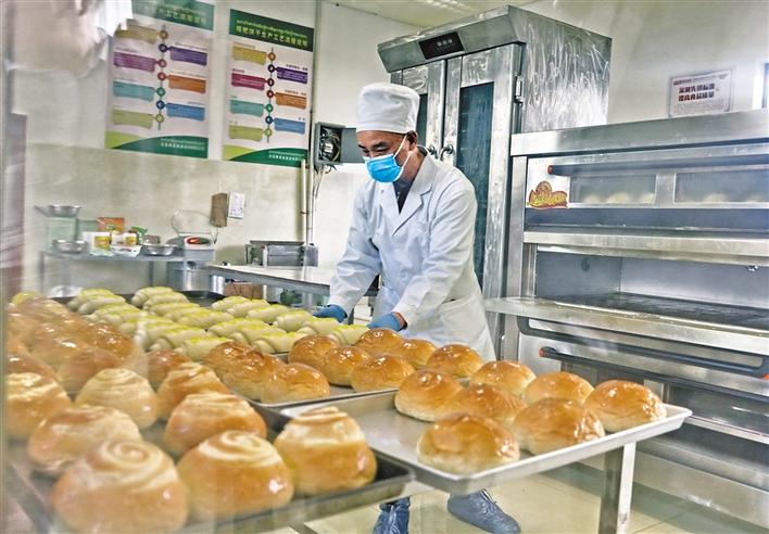 昌都市芒康縣峨江優(yōu)質(zhì)青稞種植基地農(nóng)牧民合作社工人在車間生產(chǎn)線上擺放青稞產(chǎn)品。丹增群培 唐斌 攝