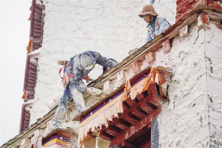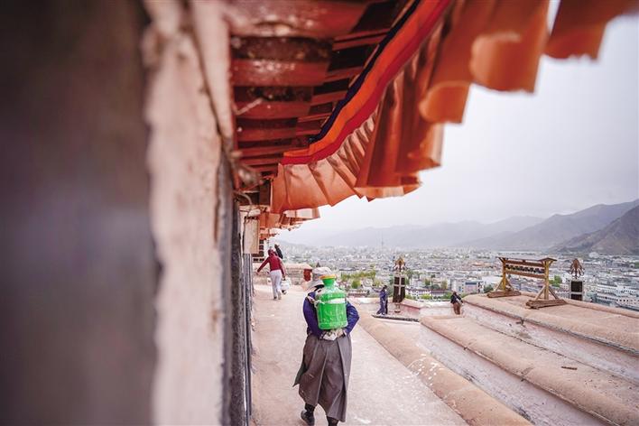 隨著布達拉宮“粉刷季”開始,很多市民群眾自發(fā)前往布達拉宮,加入“粉刷大軍”的隊伍。