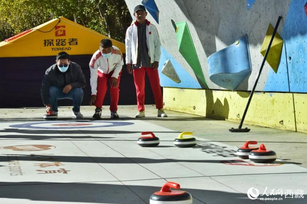 冰壺體驗。人民網(wǎng) 李海霞攝